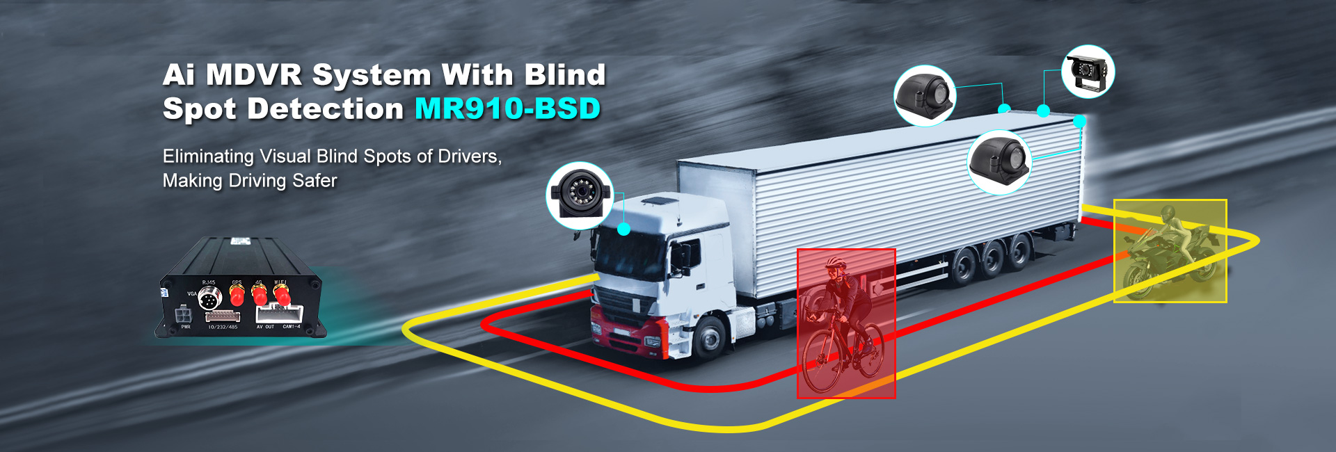 Driving Safety Warning System MR910/920/930 Series is an intelligent terminal product that integrates multiple advanced functions such as GPS/Beidou positioning monitoring, local SD card recording, 4G remote real-time video monitoring, Driver Status Monitoring(DSM)/ Advanced Driver Assistance System(ADAS)/Blind Spot Detection(BSD)/ 360°Around View Monitoring (AVM) , etc. -